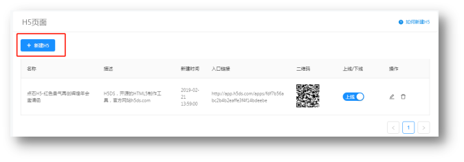 1.点击“新建H5”按钮,跳转至H5的模版页面。