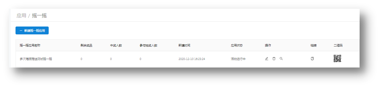 4.编辑完成后,一个摇一摇应用就创建完成了,您可以在应用的首页里看到这条记录